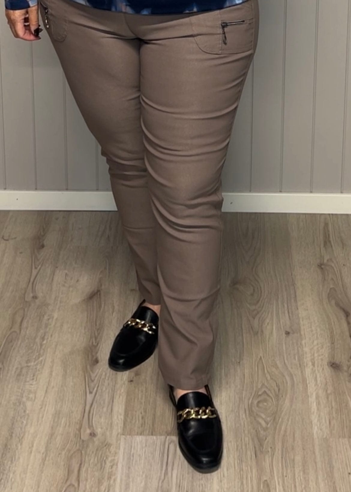 JST bukse (8880) med knapp og glidelås på lomme Taupe