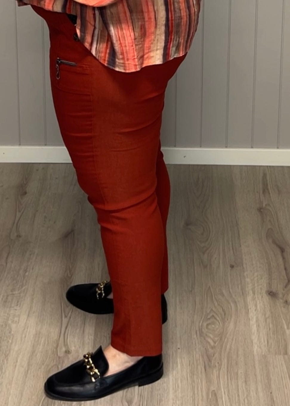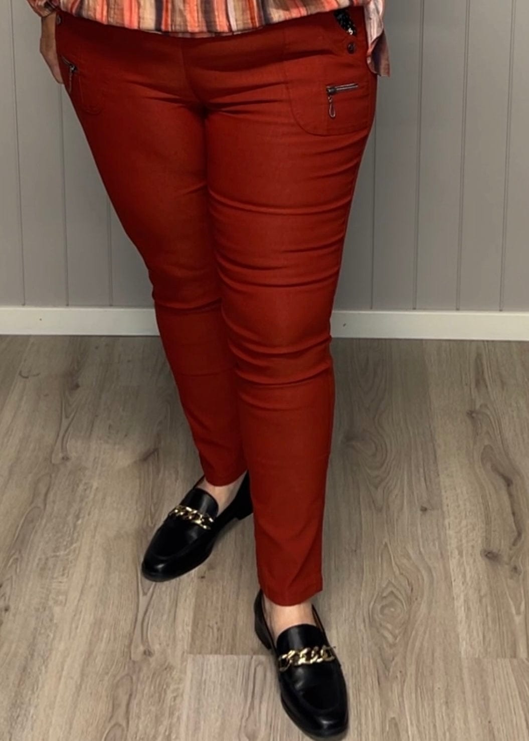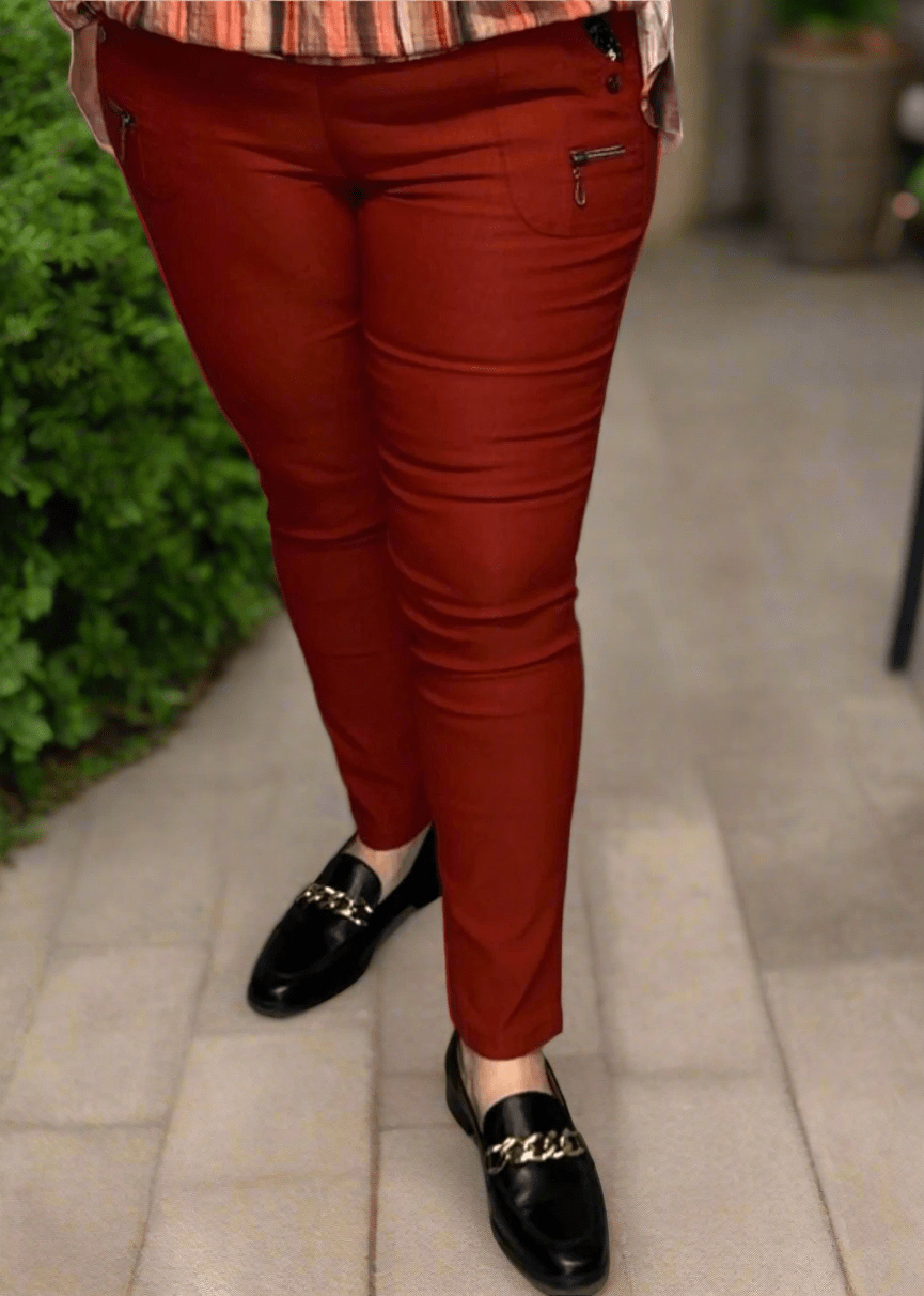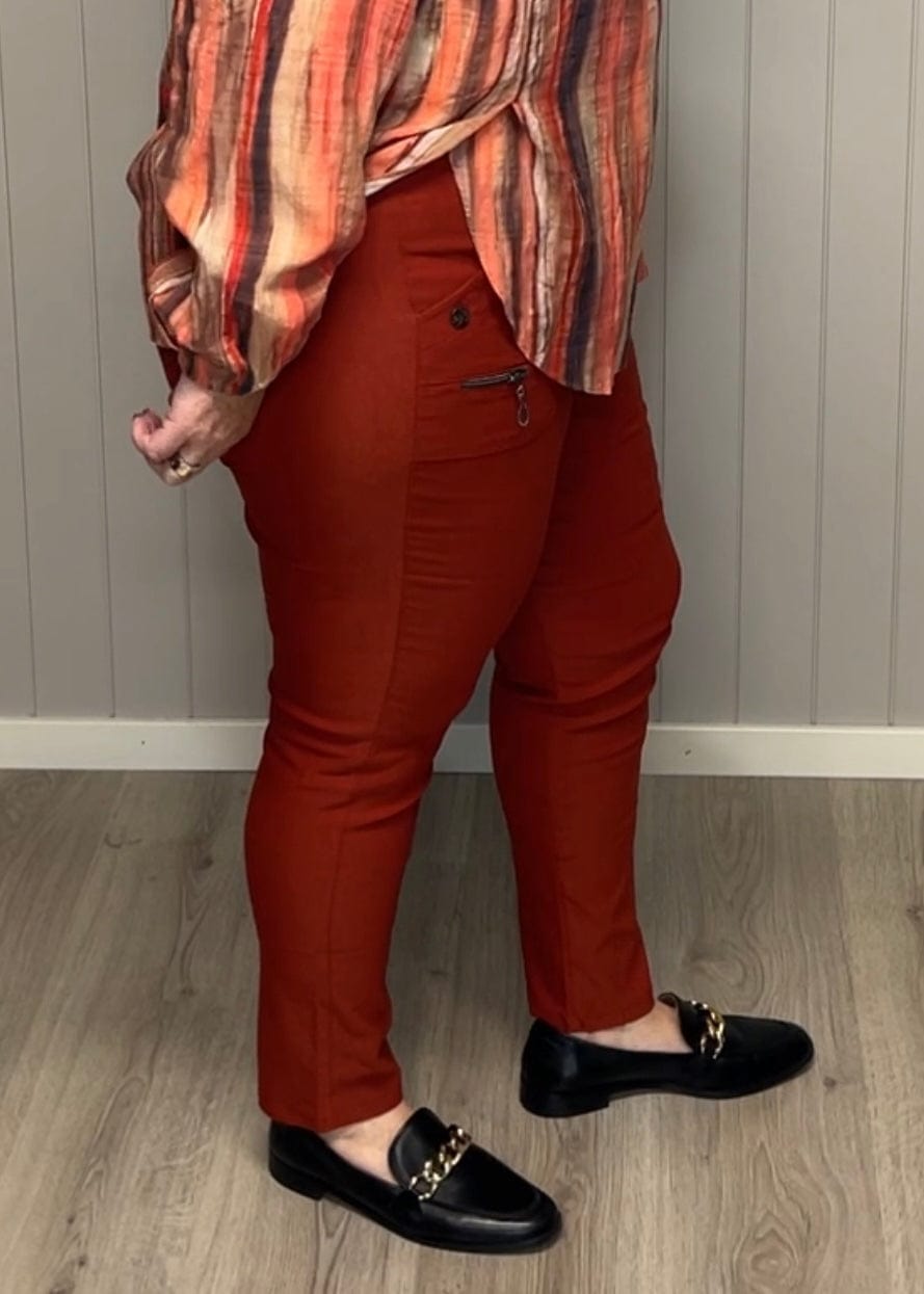JST bukse (8880) med knapp og glidelås på lomme Rust