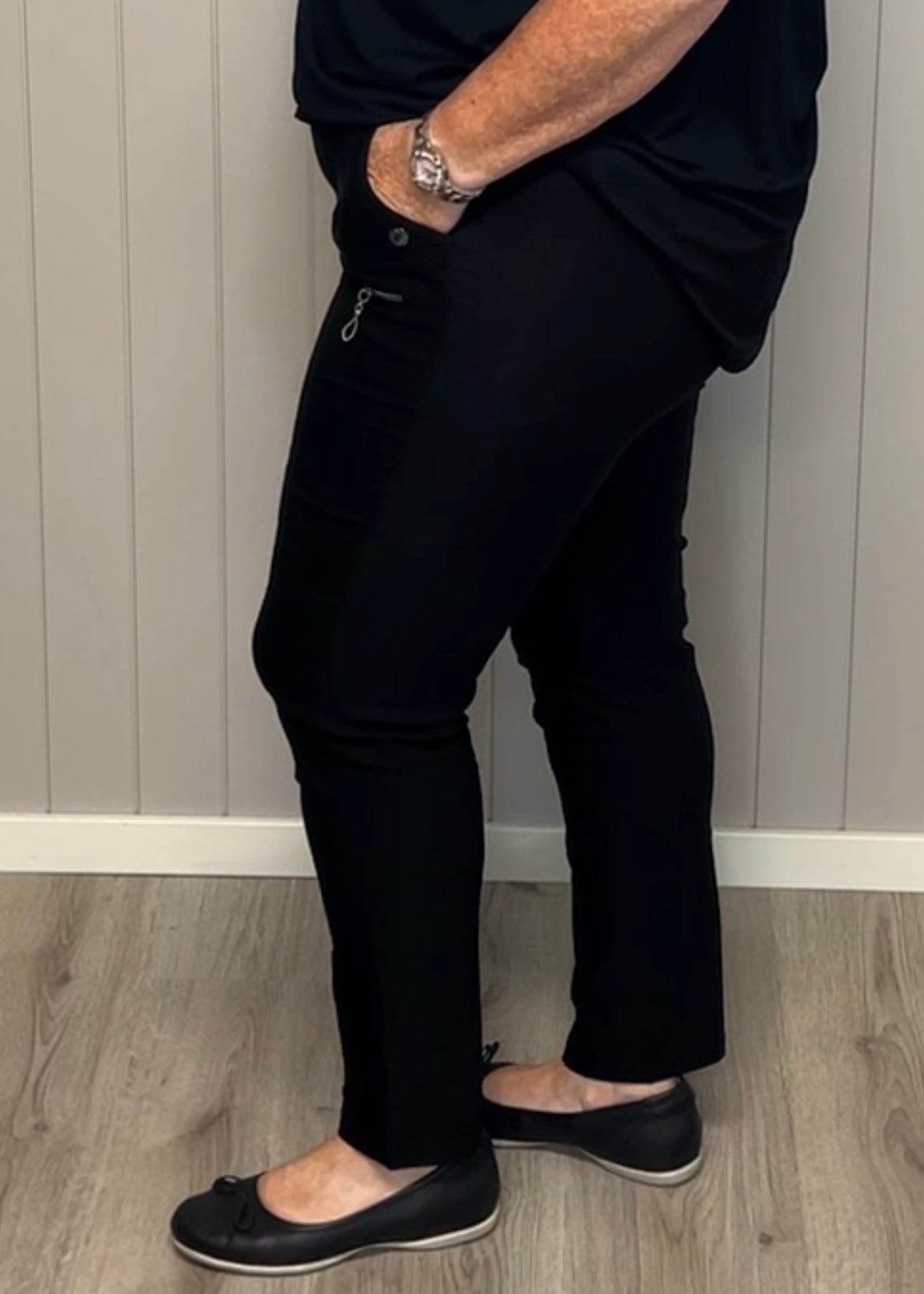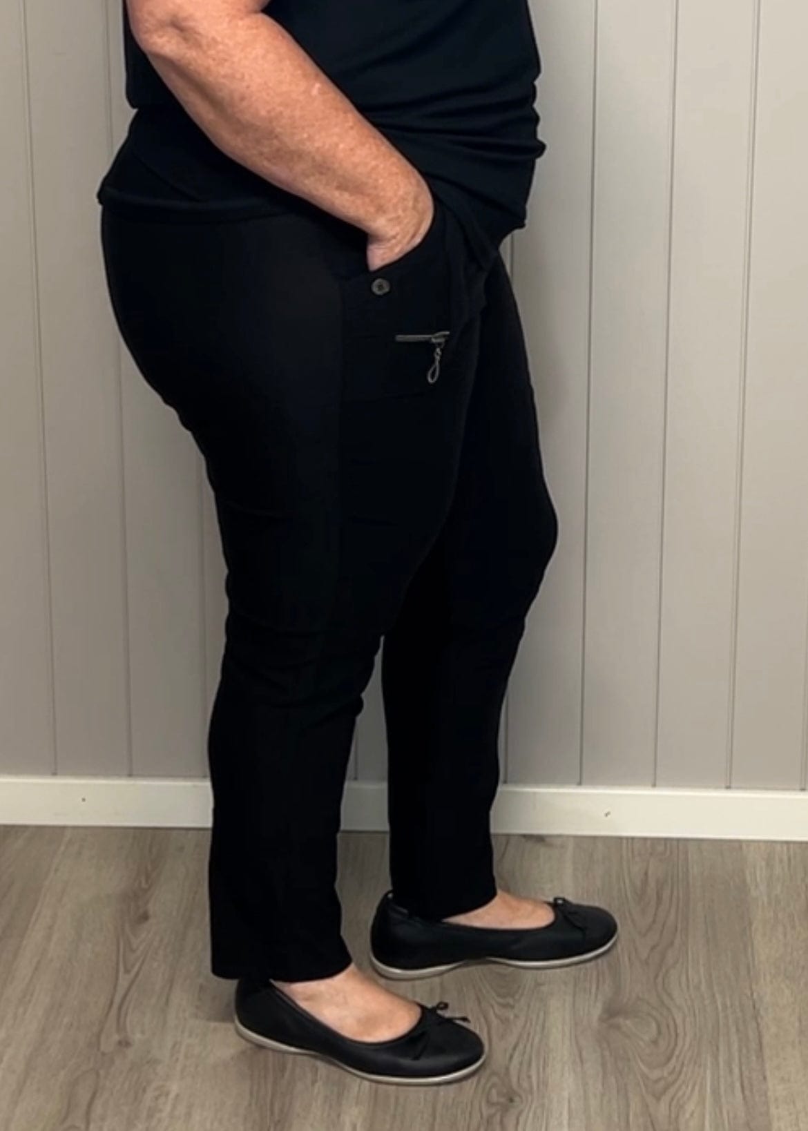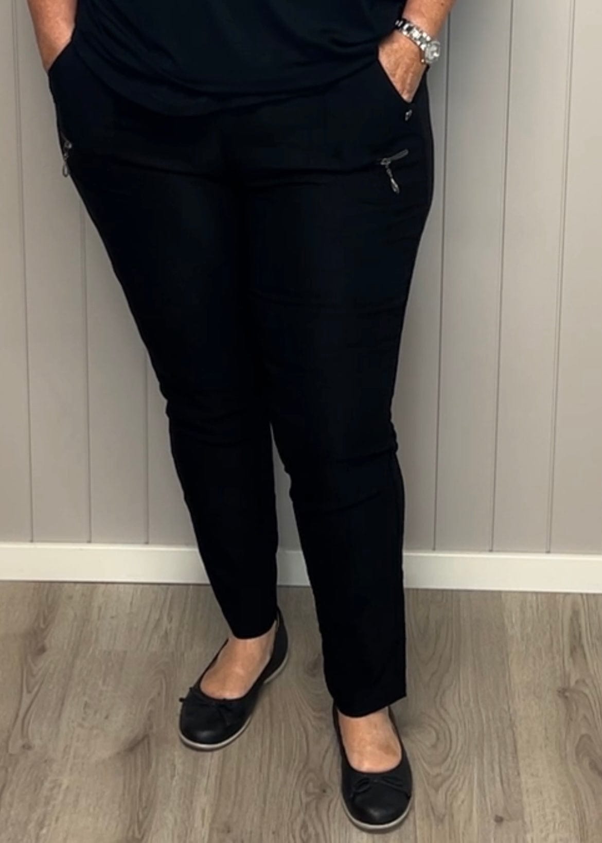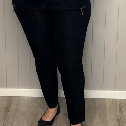 JST bukse (8880) med knapp og glidelås på lomme Sort