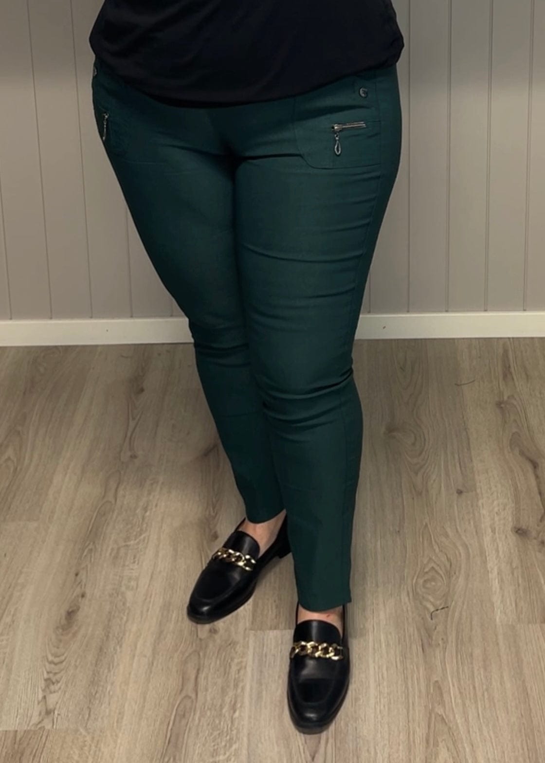 JST bukse (8880) med knapp og glidelås på lomme Flaskegrønn